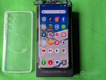 Smartphone Samsung Galaxy S21 Ultra 5G SM-G998B/DS con scatola originale e cavo usb-c Vetro rotto in basso a sinistra ma touchscreen perfettamente funzionante Pellicola protezione display cambiata da poco Batteria ancora discreta 256 Gb memoria interna 12 Gb RAM Pellicola protettiva display appena applicata Display 6,8” Amoled Fotocamere 108 Mp + 10 Mp + 10 Mp + 12 Mp Zoom ottico 10x