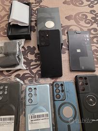 Vendo samsung galaxy s21 ultra in buone condizioni generali,comparsa una linea verde centrale,una telecamera non funziona bene si vede sfocato dietro il cover batteria un po lesionato ma tutte queste anomalie non influisce al funzionamento del telefono do in dotazione tutto i componenti in foto caricatore nuovo ecc.