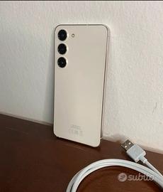 vendo per passaggio ad iphone,samsung galaxy s23 bianco 128gb praticamente nuovo,non possiedo più la scatola originale spedisco con altra scatola con cavetto e caricabatterie