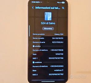 Vendo Samsung Galaxy S24 128GB Dual SIM (SM-S921B/DS) in condizioni eccellenti. Telefono tenuto perfettamente, perfettamente funzionante e senza alcun difetto. Nessun graffio su display o retro. Sempre usato con cover. Caratteristiche 128GB Dual SIM Display 120Hz Colore grigio/viola Batteria in ottimo stato Mai riparato IMEI verificabile Includo Cover trasparente magnetica (visibile in foto) + altra cover scatola originale