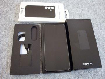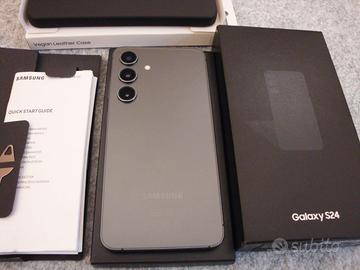Samsung Galaxy S24, 256 GB, Onyx Black, MAI UTILIZZATO, in condizioni PARI AL NUOVO, scatola aperta solo per aggiornamento software iniziale; telefono mai utilizzato, conservato nella sua scatola con la massima cura. Accessoriato con cover in pelle vegan originale Samsung anch'essa nuova (introvabile).
