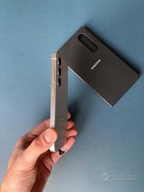 Vendo smartphone Samsung Galaxy S24 NUOVO, mai acceso, solo scartato dalla confezione originale a scopo illustrativo (ancora con pellicola come da foto). Venduto in scatola originale con numero di serie.
