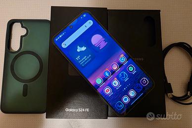 Salve, come da titolo, vendo Samsung galaxy s24fe graphite, da vetrina, mai utilizzato, capacità batteria 100% completo di scatola accessori, cavo originale, cover mag-safe.