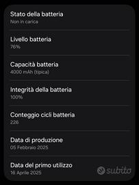 telefono pari al nuovo batteria originale al 100% ancora in garanzia, acquistato sul sito Samsung 1 anno fa nessun graffio sullo schermo. nessun danno estetico completo di scatola e caricabatterie originali vendo perché ho acquistato un z fold