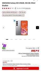 Vendo Samsung Galaxy S25 256GB colore Silver Shadow, nuovo e sigillato, mai aperto né utilizzato.