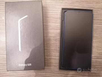 SAMSUNG GALAXY S25 DA 256 GB. CON COVER SPIGEN E PELLICOLA OPACA INSTALLATE. A CORREDO UNA COVER TRASPARENTE NUOVA E 3 PELLICOLE OPACHE DI RICAMBIO. CAVO DI RICARICA E SCATOLA PRESENTI. GARANZIA FINO A MAGGIO 2027.