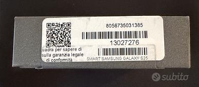 Smartphone Samsung Galaxy S25 FE, imballo completamente sigillato (mai aperto), 128gb, colore nero, completo di scontrino d'acquisto per la garanzia datato 26/01/2026.