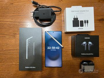 Vendo Samsung Galaxy S25 Ultra 512 Gb 12 Gb, titanium jetblack completo di scatolo originale con componentistica interna ,S Pen originale, Caricabatteria da 50W originale. In omaggio regalo Samsung Galaxy Buds 3 Pro del valore di 150€. Inclusa cover della Spigen Lo smartphone è perfettamente funzionante non presenta alcun graffio, sempre tenuto con cover e pellicola protettiva. Il tutto acquistato sul sito della Samsung Italia, in data 22/05/2025. Quindi coperto di garanzia ufficiale, fino al 22/05/2027. Non accetto scambi o proposte ridicole. Effettuo spedizione in tutta Italia a vostro carico. Prezzo leggermente trattabile!! Resto a disposizione per altre informazioni