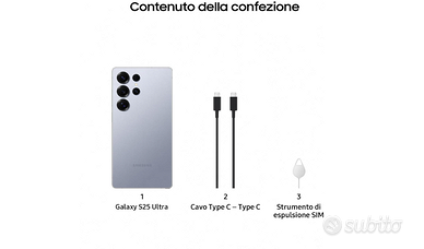 📦 Inclusi: Galaxy S25 Ultra Titanium Gray 12/1TB, cavo USB-C originale, confezione originale, passaggio dati gratuito.