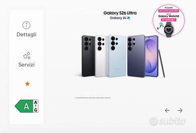 Galaxy S26 Ultra 256 giga Specificare il colore in fase di acquisto Nuovi siggillati. Garanzia samsung 2 anni + fattura gresaldi shop Galaxy watch 8 in omaggio OFFERTA VALIDA SOLO ENTRO LE 23:59