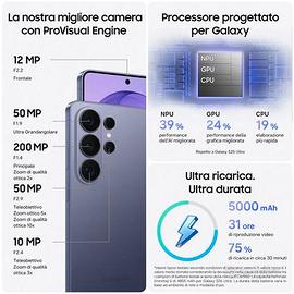 Samsung Galaxy S26 Ultra + AURICOLARI compresi Scopri Samsung Galaxy S26 Ultra, lo smartphone AI per la prima volta con Privacy Display integrato, la nostra fotocamera più luminosa da 200MP e un processore potente che rende Galaxy AI ancora più intelligente. Tutto nel palmo della tua mano, per migliorare la tua quotidianità. Privacy Display integrato: Il Privacy Display integrato su Galaxy S26 Ultra ti permette di decidere se nascondere l'intero schermo, app specifiche, notifiche in entrata, PIN e password quando accedi a Impostazioni, Blocco schermo e Area Personale. Scatta, scrivi e trasforma le tue foto con Galaxy AI: Descrivi in modo naturale le modifiche che desideri apportare alle tue foto ed ottieni un editing fotografico facile e veloce con Assistente Foto. Galaxy AI realizzerà la tua idea in pochi minuti. La migliore camera Samsung potenziata da AI: Cattura foto e video nitidi anche con poca luce con fotocamera da 200 MP e Nightography. Le aperture più luminose e riduzione del rumore garantiscono immagini chiare e dettagliate di notte. Blocco orizzontale: La nuova funzione Blocco orizzontale di Stabilizzatore mantiene costante la qualità dei tuoi video, anche se ruoti il dispositivo di 360°. Ogni volta otterrai video più fluidi e senza vibrazioni. Ultra ricarica. Ultra durata: Galaxy S26 Ultra supporta la Ricarica Ultrarapida 3.0, progettata per ricaricare il tuo dispositivo a velocità incredibili senza compromettere lo stato della batteria o il tempo che hai a disposizione.
