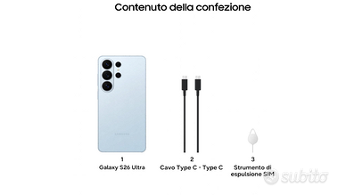 📱 Samsung Galaxy S26 Ultra – Sky Blue – 12/512 GB – KM Zero – Garanzia 24 mesi – € 1049 Questo Galaxy S26 Ultra Sky Blue 12/512 GB è KM Zero, pronto all’uso e testato. Inclusi 24 mesi di garanzia valida in tutta Italia. 📶 Dual SIM (Nano SIM + eSIM) 📦 Inclusi: Galaxy S26 Ultra Sky Blue 12/512 GB, cavo USB-C, cover protettiva e pellicola display incluse (sempre). Caratteristiche principali: Display Dynamic AMOLED 2X 6.9" QHD+, 1-120 Hz LTPO, molto luminoso e fluido. Processore Snapdragon 8 Elite Gen 5 for Galaxy, top di gamma e molto potente. 12 GB RAM + 512 GB memoria, spazio enorme per foto, video e app. Fotocamere: principale 200 MP + 50 MP ultra-wide + 50 MP tele 5x + 10 MP tele 3x. Privacy Display integrato, utile per proteggere la visuale in treno, ufficio e luoghi pubblici. S Pen integrata Batteria 5000 mAh con ricarica rapida 60W via cavo + 25W wireless. 5G, NFC Wi-Fi 7, Bluetooth. Resistenza IP68 Android aggiornato e pronto all’uso 💳 Pagamenti accettati: Klarna (3 rate senza interessi), rate Agos fino a 48 mesi, Satispay, contanti, POS, bonifico bancario. 🚚 Spedizione inclusa, imballo protettivo e tracciabilità. Pagamento anticipato sicuro. 📍 Disponibile subito presso il nostro store di Legnano (MI) – Via XXIX Maggio 172 Ampia selezione di smartphone, tablet, notebook e accessori premium. 🎥 Test e recensioni su YouTube – Batista70phoneblog 📺 www.youtube.com/@Batista70phoneblog 📰 Novità e approfondimenti su www.batista70phone.com 🔁 Permute e scambi in sede Samsung Galaxy S25, S24, S23, S22 Ultra, Z Fold, Z Flip, Apple iPhone 12 13 14 15 16 17 Mini Air Pro Max, iPad, Redmi, Xiaomi MI, Motorola, Asus, OnePlus, Oppo, Realme, Sony, Poco, Google Pixel, Nokia, Vivo, Nothing, Honor, Huawei 📩 Mail: batista70phonestore@gmail.com 📱 WhatsApp: