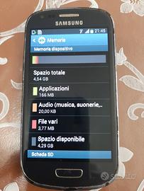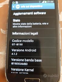 cellulare samsung galaxy s3 mini gt-i8190 4gb di spazio e in gioiellino di muove velocemente e uscito nel 2012 con android 4.1 ed è aggiornato alla 4.1.2 no cavo alimentazione no scatola