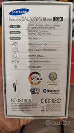 Samsung Galaxy s3 mini bianco, funzionante ben conservato unico graffio nell' angolo inferiore vedi penultima foto. Scatola originale, privo di caricatore. HSDPA 14.4Mbps /HSUPA 5.76Mhps Tri- Band (900/1900/2100MHz) Quad-Band EDGE/GPRS Quad-Band (850/900/1800/1900 MHz) 1GHz Dual Core 5MP AF Camera +VGA Schermo 100.8 mm (4.0") WVGA sAMOLED 1500mAh Batteria NFC Near Field Communication GPS/ GLONASS Valuto eventuali offerte