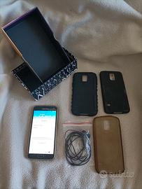 Samsung Galaxy S5 con aggiunta di vetro temperato sul display completo di auricolari e varie cover.