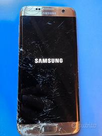 Samsung Galaxy S7 Edge con vetro rotto (tenuto insieme dalla pellicola). il telefono é perfettamente funzionante, non presenta problemi a parte lo schermo da sostituire.