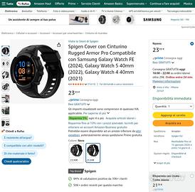 Vendo smartwatch Galaxy Watch 4 bluetooth 40mm nero + cover rugged Spigen (costo della sola cover su Amazon 24 euro, vedi foto)