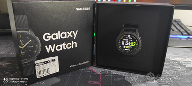 Vendo smartwatch Samsung Galaxy watch 42 mm in ottime condizioni (vedi foto), presenta solo qualche piccolo graffietto da utilizzo. L orologio funziona perfettamente. Vendo insieme alla sua confezione originale e al contenuto come quando acquistato (doppio cinturino di lunghezza variabile, caricatore e manualistica), aggiungo inoltre cinturino verde militare e una nuova pellicola protettiva oltre a quella già applicata all orologio.