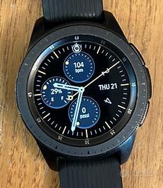 Samsung SM-R810. Dimensioni schermo: 3,05 cm (1.2"), Tipo di display: SAMOLED, Risoluzione del display: 360 x 360 Pixel, Touch screen. Frequenza del processore: 1150 MHz, Capacità RAM: 768 MB, Memoria flash: 4 GB. Wi-Fi. GPS (satellitare). Capacità della batteria: 270 mAh. Peso: 49 g. Colore cinturino: Nero. Sistema operativo incluso: Tizen Based Wearable OS 4.0