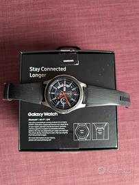 Samsung Galaxy Watch 46mm smartwatch con display Super AMOLED da 1,3 pollici a risoluzione 360 x 360 pixel. Monitora molte attività legate al fitness, outdoor e alla salute. Con cardiofrequenzimetro per il battito cardiaco e altri sensori integrati per tracciare il sonno nelle sue fasi. Inoltre, permette di leggere le notifiche in arrivo sullo smartphone abbinato. Impermeabile fino a 5 ATM (50 metri di profondità in acqua).