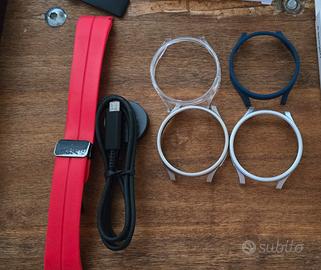 Bellissimo Watch di casa Samsung, tenuto in maniera maniacale con ancora qualche mese di garanzia(31/01/2026).Oggetto senza graffi e vetro e cinturino immacolato sempre tenuto vetro di protezione e usato cinturino rosso. A corredo ci sono 5 cover per salvare la cassa in titanio e altri 2 vetri di ricambio come da foto. completo di tutto e scatola.Versione Italiana.