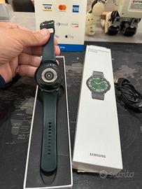 SAMSUNG GALAXY Watch 6 CLASSIC 4G LTE , cassa in acciaio colore BLACK , cinturino in silicone verde , + altro cinturino e protezione rugged colore BLACK , ufficiale Italia , 47 MM , perfetto , GPS 4G LTE , SUPER COMPLETO , scatola e accessori , 3 mesi di GARANZIA , valutiamo il ritiro del vostro usato, consegna in sede, ( via mira 4/10 secondo piano) Genova centro.
