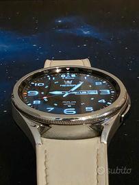 Vendo splendido Samsung Galaxy Watch 6 Classic, versione da 47mm (la più grande e ricercata) con cassa in acciaio inossidabile color argento e l'iconica ghiera girevole fisica.