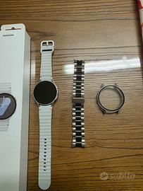 Vendo splendido Samsung Galaxy Watch 7 (versione 44mm), l'ultimo modello della gamma Samsung, in condizioni estetiche e funzionali impeccabili. Lo smartwatch è stato tenuto con estrema cura, sempre protetto, e non presenta graffi sul display o segni di usura. 🛡️ GARANZIA E SICUREZZA: L'orologio è accompagnato da fattura d'acquisto originale. La garanzia ufficiale Samsung è valida fino a Maggio 2027, offrendo massima serenità per oltre un anno di utilizzo residuo. IL PACCHETTO INCLUDE: Samsung Galaxy Watch 7 44mm: Colore Silver, completo di scatola originale e manualistica. Cinturino Originale: Modello sportivo in gomma grigio/bianco (visibile in foto), comodissimo per lo sport. Cinturino Suphart in Acciaio: Elegante cinturino a maglie bicolore (argento/nero) per un look formale, completo di kit per la rimozione delle maglie e perni di ricambio. Protezione JETech: Kit nuovo che include una cover protettiva per la cassa e vetro temperato per lo schermo (con relativi accessori di pulizia Wet/Dry). Caricabatterie: Cavo magnetico originale incluso. CONDIZIONI: Display: Perfetto, senza alcun segno. Batteria: Stato eccellente, pari al nuovo. Software: Reset già effettuato, pronto per la prima configurazione con il nuovo smartphone. PREZZO leggermente trattabile Disponibile per consegna a mano in zona [Inserisci la tua città] per verificare di persona la qualità del prodotto, oppure spedizione tracciata e sicura tramite la piattaforma. Contattatemi per ulteriori foto o informazioni. Massima serietà, no scambi o offerte ridicole