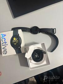 Vendo Samsung Galaxy Watch Active in colorazione nera, tenuto con molta cura. Lo smartwatch è perfettamente funzionante, ideale per il fitness e per monitorare la salute (passi, battito cardiaco, sonno). Condizioni: Il dispositivo è in ottime condizioni estetiche, come visibile dalle foto. Lo schermo è sempre stato protetto. Cosa è incluso (come da foto): • Samsung Galaxy Watch Active (corpo dell'orologio) • Cinturino originale in silicone nero (in ottime condizioni) • Cinturino aggiuntivo in tessuto tecnico nero (come nuovo, mai usato) • Cavo di ricarica magnetico USB originale • Scatola originale e manuali Specifiche principali: • Display AMOLED da 1.1 pollici, luminoso e nitido • Resistente all'acqua fino a 5 ATM (50 metri) • GPS integrato • Monitoraggio automatico degli allenamenti e del battito cardiaco • NFC per pagamenti Samsung Pay