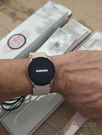 Come da titolo vendo Samsung Galaxy Watch FE con cassa rose/gold e cinturino originale rosa a sgancio rapido + 2 cinturini aggiuntivi, orologio in ottime condizioni, consumato solo nella parte posteriore della cassa come da ultima foto. Batteria perfetta. Sensori funzionanti al 100%. Contenuto del pacco: - Smartwatch Galaxy Watch FE; - cinturino rosa originale a sgancio rapido leggermente usurato; - cinturino in tela elastica bordeaux sfumato bianco; - cinturino rosa non originale ma pari al nuovo; - caricabatterie magnetico USB; - scatola originale con istruzioni. II dispositivo è funzionante al 100%. Ideale per sport, monitoraggio salute, notifiche, chiamate e tante altre funzioni smart. Elegante con autonomia di circa 38 ore. Perfetto per fitness e monitoraggio sonno. Compatibile con smartphone Android. Spedizione veloce e accurata