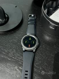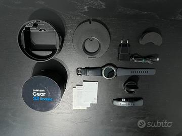 Comprende: scatola, istruzioni, orologio + cinturini, cinturino di ricambio taglia S, caricatore, base di ricarica, cuscinetto per la conservazione della forma dei cinturini (tutto originale Samsung).
