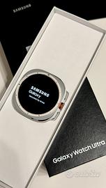 Vendo Samsung Galaxy Watch Ultra 47mm LTE (4G) Titanium White, acquistato da MediaWorld il 18/10/2025.