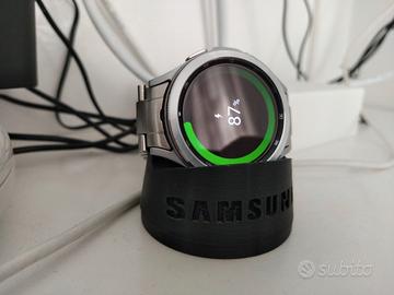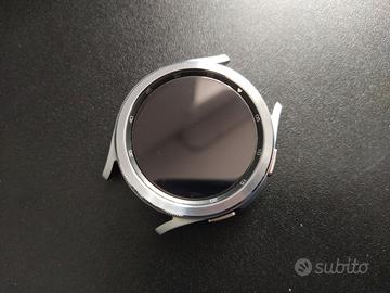 Smartwatch Samsung Galaxy Watch4 Classic, modello da 46mm con cassa Silver e connettività Bluetooth + Wi-Fi. L'oggetto è in condizioni perfette, pari al nuovo.
