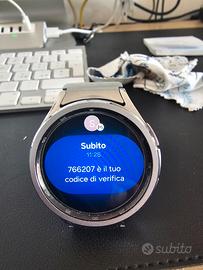 Vendo smartwatch Samsung Galaxy Watch6 Classic LTE 47mm, colore acciaio versione italiana. Usato per circa un anno, tenuto in condizioni eccellenti: nessun graffio, crepa o segno di usura. Design premium con ghiera girevole in acciaio inox e funzionalità avanzate per salute, fitness e produttività. pellicola prottetiva Completo di scatola originale e accessori. non trattabile non scambio con con nulla
