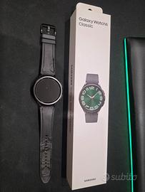 Vendo Samsung Galaxy Watch6 Classic, versione top di gamma LTE (connessione indipendente senza telefono) nella colorazione più elegante: cassa da 47mm completamente Nera. Acquistato a novembre 2023 (fornisco scontrino per dimostrare la lecita provenienza e l'unico proprietario). L'orologio è perfettamente funzionante, fluido in ogni operazione e con la batteria in ottime condizioni. Specifiche: Display INTONSO: Non è mai stato toccato senza pellicola. Ne ha ancora una applicata fin dal primo giorno, quindi il vetro zaffiro sottostante è letteralmente pari al nuovo. Nessun graffio. Retro e sensori: Perfetti, immacolati. Accessori MAI USATI: Fornisco scatola originale, manualistica e cavo di ricarica originale ancora intatti e mai srotolati/utilizzati. Condizioni estetiche generali: L'orologio è stato usato quotidianamente, quindi presenta normali e lievi segni del tempo. Nello specifico, la ghiera girevole nera risulta leggermente scolorita sui bordi per l'attrito con i vestiti. Il cinturino è quello originale in pelle nera: la parte con la fibbia è come nuova, mentre la parte con i fori presenta evidenti segni di usura. Essendo un attacco standard, potete comunque sostituirlo facilmente con pochi euro. Vendo per passaggio ad altro modello. Dispositivo già ripristinato ai dati di fabbrica, disaccoppiato da account e pronto all'uso.