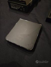 Samsung galassia Flip4 Memoria 512 GB Ram 8 GB Vetro posteriore crepato come da foto Vetro interno con macchia a sx dove si piega E schermo interno con problemi al touch in alcune zone Con scatola originale e cavo per scambio dati originale No cavo carica batteria con usb normale