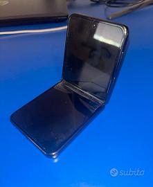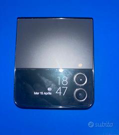 Smartphone Samsung Galaxy Z Flip4 con un design pieghevole e compatto. - Finitura bicolore nero e argento. - Doppio obiettivo fotocamera posteriore. - Display esterno per notifiche. Vendo con scatola e cavo USB-C originali