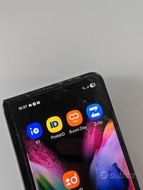 vendo Samsung galaxy Z fold 3 danneggiato, il vetro del display esterno nell angolo in alto a destra è lesionato ma funziona perfettamente ed è comprensivo di pellicola proteggi schermo, il display interno funziona perfettamente, la riga che si vede è solo l'usura della pellicola interna ma non influisce sull uso in alcun modo , il telefono non si apre del tutto a 180 gradi ma qualche grado in meno, a parte questi difetti il telefono funziona PERFETTAMENTE IN OGNI SUA FUNZIONE, touch,chiamate,audio,etc, viene usato quotidianamente e l' esperienza d'uso è ECCELLENTE vendo per passaggio a fold superiore.