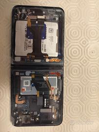 Vendo frame (scocca color graffite) Samsung z flip 5 display non funzionante come si evince in foto manca la scheda madre, lo schermo esterno, la fotocamera anteriore (quella interna), il dock di ricarica usb C, la ricarica wireless e lo slot sim.