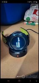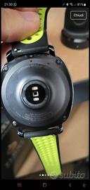 Smartwatch Samsung Gear Sport con cinturino bicolore. - Cassa nera. - Cinturino con inserti verdi.