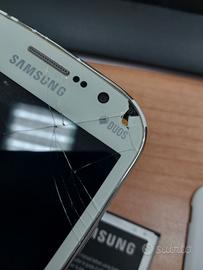 Vendesi Samsung Grand Neo Plus duos in discrete condizioni generali. Danneggiati scocca e vetrino, ma touchscreen e display funzionanti. Ottimo per ricambi. Condizioni visto e piaciuto. Si vende senza caricabatteria o accessori, ma in scatola originale. Contattate per info.
