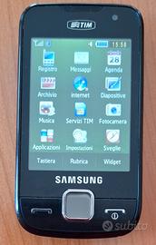 Cellulare Samsung GT-S5600 touchscreen, completo di batteria, caricabatteria con cavo, caricatore per auto Cellularline.