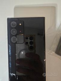 Samsung Note 20 Ultra 5G con 256GB di memoria interna memoria espandibile. Il display ha due linee ma non ha botte o crepe. Il resto funziona tutto. Più un caricabatterie samsung da 25w nuovo ancora sigillato e una cover trasparente nuova. Tappo posteriore sostituito comprato su Amazon compatibile. - Display da 6.9 pollici. - Fotocamera principale da 108 MP. - Batteria da 4500 mAh.