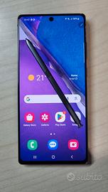 Samsung Note20 5G completo di scatola originale, manuale di istruzioni, spilla per estrarre la sim, cavo di ricarica e cover in silicone