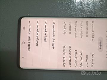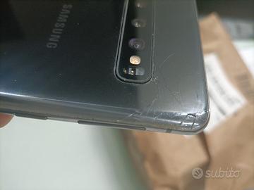 Samsung s10 da 128gb di memoria 8 di RAM dual SIM tenuto bene leggera crepa come si vede dalla foto nel lato posteriore che non pregiudica il funzionamento, completo di scatola e accessori
