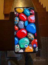 Vendo Samsung s10 plus, bianco,con un piccolo danno sulla parte anteriore dx, come da foto,che non influisce sull'utilizzo del dispositivo, compreso di scatola originale.