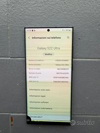 Samsung S22 ultra per ricambi 8/128 telefono caduto a terra con una crepa in un angolo e macchia nera , funziona al 100% touch camere rete wifi pennino , usato circa altri 6 mesi dopo la rottura !! Presente solo telefono e fattura d’acquisto no scatola no accessori VENDO COME GUASTO RICAMBI NON ACCETTO RECLAMI O RESTITUZIONI PER MOTIVO ALCUNO DOPO LA VENDITA VISTO E PIACIUTO Consegna a mano Abruzzo o molise o spedizione attraverso la App