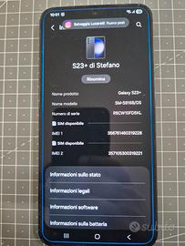 Vendo bellissimo Samsung S23+ Plus SM-S916B/DS con 512Gb di memoria ed 8Gb di Ram. Praticamente perfetto, con Cover e pellicola sullo schermo. Purtroppo non trovo più la scatola ma verrà fornito con cavo originale Usb-C. Non è possibile inviare più di 6 foto ma se volete quelle degli angoli ve le mando in chat.