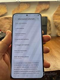 vendo magnifico Samsung s25 versione 256 gb colore blu. lo smartphone è stato acquistato giorno 10/02/2025, come da ricevuta, quindi ovviamente ancora in piena garanzia. Il telefono è realmente come nuovo non ha alcun difetto né estetico e né funzionale. Utilizzato sempre con Cover e pellicola sullo schermo. Oltre lo smartphone cedo 2 cover e pellicola già applicata. Solo 112 cicli di ricarica, così come da foto allegata. vendo solo a Gente seria.