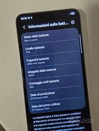 vendo come da foto samsung s25 256gb per passaggio ad s26 ultra, ha già applicata un vetro in più ne regalo un altro, unico difetto sulla vernice come si vede dalle foto